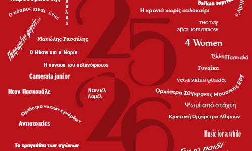 ΛΙΜΠΕΡΤΟ: ΔΙΟΝΥΣΗΣ ΚΑΨΑΛΗΣ ΣΚΗΝΟΘΕΣΙΑ: ΒΑΣΙΛΗΣ ΚΕΧΑΓΙΑΣ «ΜΑΡΘΑ» 24 Μαρτίου ΕΙΣΙΤΗΡΙΑ ΜΟΥΣΙΚΗ ΔΙΕΥΘΥΝΣΗ: ΜΙΛΤΟΣ ΛΟΓΙΑΔΗΣ ΣΚΗΝΟΘΕΣΙΑ: ΓΙΑΝΝΗΣ ΣΚΟΥΡΛΕΤΗΣ Η ΝΥΧΤΕΡΙΔΑ 19, 20, 21, 23, 25, 26, 27 Δεκεμβρίου & 3,4 Ιανουαρίου ΕΙΣΙΤΗΡΙΑ ΜΟΥΣΙΚΗ ΔΙΕΥΘΥΝΣΗ: ΜΙΛΤΟΣ ΛΟΓΙΑΔΗΣ ΣΚΗΝΟΘΕΣΙΑ: ΓΙΑΝΝΗΣ ΣΚΟΥΡΛΕΤΗΣ Η ΝΥΧΤΕΡΙΔΑ 19, 20, 21, 23, 25, 26, 27 Δεκεμβρίου & 3,4 Ιανουαρίου ΕΙΣΙΤΗΡΙΑ ΟΛΥΜΠΙΑ ΔΗΜΟΤΙΚΟ ΜΟΥΣΙΚΟ ΘΕΑΤΡΟ «ΜΑΡΙΑ ΚΑΛΛΑΣ» ΕΙΣΙΤΗΡΙΑ ΟΛΥΜΠΙΑ ΔΗΜΟΤΙΚΟ ΜΟΥΣΙΚΟ ΘΕΑΤΡΟ «ΜΑΡΙΑ ΚΑΛΛΑΣ» ΕΙΣΙΤΗΡΙΑ ΟΛΥΜΠΙΑ ΔΗΜΟΤΙΚΟ ΜΟΥΣΙΚΟ ΘΕΑΤΡΟ «ΜΑΡΙΑ ΚΑΛΛΑΣ» ΕΙΣΙΤΗΡΙΑ ΤΕΛΕΥΤΑΙΕΣ ΠΑΡΑΣΤΑΣΕΙΣΠΕΡΙΣΣΟΤΕΡΑ ΕΙΣΙΤΗΡΙΑ 20 Ιανουαρίου- 8:30 μμ έως10:00 μμSODA Americana | Συμφωνική Ορχήστρα Δήμου ΑθηναίωνΜουσική Διεύθυνση Βλαδίμηρος ΣυμεωνίδηςΠιάνο Βασίλης ΒαρβαρέσοςΠΕΡΙΣΣΟΤΕΡΑ ΕΙΣΙΤΗΡΙΑ 26 Ιανουαρίου- 8:30 μμ έως10:30 μμΤρεις Θεατρικοί Μύθοι – Μάνος ΧατζιδάκιςΜουσική Διεύθυνση Σταύρος ΜπερήςΕνορχηστρώσεις Κωστής Κριτσωτάκης ΠΕΡΙΣΣΟΤΕΡΑ ΕΙΣΙΤΗΡΙΑ 27 Ιανουαρίου- 8:30 μμ έως10:30 μμΣινέ Μαριάννα – Ορχήστρα Σύγχρονης Μουσικής ΕΡΤΜουσική Διεύθυνση Νίκος ΠλατύραχοςTραγούδι Γιώργος Νταλάρας, Νεφέλη Φασούλη, Σταύρος Δάλκος, Βίκυ ΚαρατζόγλουΠΕΡΙΣΣΟΤΕΡΑ ΕΙΣΙΤΗΡΙΑ 28 Ιανουαρίου- 8:30 μμ έως10:00 μμThe Day After Tomorrow -Big Band Δήμου ΑθηναίωνΚαλλιτεχνική επιμέλεια Σάμι ΑμίρηςΕρμηνεύουν Fergus Currie, Mark Crooks, Βαγγέλης ΠαρασκευαϊδηςΠΕΡΙΣΣΟΤΕΡΑ ΕΙΣΙΤΗΡΙΑ 30 Ιανουαρίου- 8:30 μμ έως10:30 μμΔΥΟ ΕΠΕΤΕΙΟΙ, ΜΙΑ ΣΚΗΝΗ – ΚΩΣΤΑΣ ΛΕΙΒΑΔΑΣ – ΟΡΧΗΣΤΡΑ ΝΥΚΤΩΝ ΕΓΧΟΡΔΩΝ ΠΑΤΡΑΣTραγούδι Eλένη Τσαλιγοπούλου, Μελίνα Ασλανίδου, Ανδριάνα Μπάμπαλη, Γρηγόρης Κλιούμης, Ρένος ΧαραλαμπίδηςΠΕΡΙΣΣΟΤΕΡΑ ΕΙΣΙΤΗΡΙΑ 1 Φεβρουαρίου- 7:00 μμ έως8:30 μμCOMPOSIZIONI DA CAMERATραγούδι Αντώνης ΚορωναίοςΠιάνο Δημήτρης ΓιάκαςΠΕΡΙΣΣΟΤΕΡΑ ΕΙΣΙΤΗΡΙΑ 2 Φεβρουαρίου- 8:30 μμ έως10:00 μμΗ σονάτα του σεληνόφωτος – Μουσικό αναλόγιοΜουσική Διεύθυνση Θοδωρής ΛεμπέσηςΑφήγηση Παναγιώτα Βλαντή ΠΕΡΙΣΣΟΤΕΡΑ ΕΙΣΙΤΗΡΙΑ 7 Φεβρουαρίου- 8:00 μμ έως10:00 μμΔΙΔΩ – ΔΙΟΝΥΣΙΟΣ ΛΑΥΡΑΓΚΑΣ – Συμφωνική Ορχήστρα & Χορωδία Δήμου ΑθηναίωνΜουσική Διεύθυνση Βύρων ΦιδετζήςΔιεύθυνση χορωδίας Σταύρος ΜπερήςΠΕΡΙΣΣΟΤΕΡΑ ΕΙΣΙΤΗΡΙΑ 9 Φεβρουαρίου- 8:30 μμ έως10:00 μμΟ ΚΟΣΜΟΣ ΕΙΝΑΙ ΕΝΑΣ -ΚΩΝΣΤΑΝΤΙΝΟΣ ΒΗΤΑΣύνθεση Κωνσταντίνος ΒήταΕρμηνεύουν Όλια Λαζαρίδου, Κωνσταντίνος ΒήταΠΕΡΙΣΣΟΤΕΡΑ ΕΙΣΙΤΗΡΙΑ 10 Φεβρουαρίου- 8:00 μμ έως10:00 μμΠεπρωμένον φυγείν… – Ομηρικές ηρωίδες στις ιταλικές καντάτες του 17ου αιώναΚαλλιτεχνική επιμέλεια Elisa BarbessiΣκηνοθεσία Μάρθα ΤομπουλίδουΠΕΡΙΣΣΟΤΕΡΑ ΕΙΣΙΤΗΡΙΑ 11 Φεβρουαρίου- 8:00 μμ έως9:30 μμBalkan Surprise – Big Band Δήμου ΑθηναίωνΚαλλιτεχνική επιμέλεια Σάμι ΑμίρηςΣυμμετοχή Αντώνης Ανδρέου (τρομπόνι), Κίμωνας Καρούτζος (κοντραμπάσο), Mihail Yossifov (τρομπέτα), Vasil Spassov (πιάνο), Atanas Popov (τύμπανα)ΠΕΡΙΣΣΟΤΕΡΑ ΕΙΣΙΤΗΡΙΑ 17 Φεβρουαρίου- 8:30 μμ έως10:00 μμΕίναι παιδιά πολλών ανθρώπων τα λόγια μας – Ηλίας ΑνδριόπουλοςΕνορχηστρώσεις Άγγελος ΗλίαςΕρμηνεύουν Μανώλης Μητσιάς, Δημήτρης Μπάσης, Θεοδώρα ΜπάκαΗΜΕΡΟΛΟΓΙΟ ΠΑΡΑΣΤΑΣΕΩΝ ΤΕΛΕΥΤΑΙΕΣ ΠΑΡΑΣΤΑΣΕΙΣ20 Ιανουαρίου- 8:30 μμSODA Americana | Συμφωνική Ορχήστρα Δήμου ΑθηναίωνΕΙΣΙΤΗΡΙΑ ΠΕΡΙΣΣΟΤΕΡΑ 26 Ιανουαρίου- 8:30 μμΤρεις Θεατρικοί Μύθοι – Μάνος ΧατζιδάκιςΕΙΣΙΤΗΡΙΑ ΠΕΡΙΣΣΟΤΕΡΑ 27 Ιανουαρίου- 8:30 μμΣινέ Μαριάννα – Ορχήστρα Σύγχρονης Μουσικής ΕΡΤΕΙΣΙΤΗΡΙΑ ΠΕΡΙΣΣΟΤΕΡΑ 28 Ιανουαρίου- 8:30 μμThe Day After Tomorrow -Big Band Δήμου ΑθηναίωνΕΙΣΙΤΗΡΙΑ ΠΕΡΙΣΣΟΤΕΡΑ 30 Ιανουαρίου- 8:30 μμΔΥΟ ΕΠΕΤΕΙΟΙ, ΜΙΑ ΣΚΗΝΗ – ΚΩΣΤΑΣ ΛΕΙΒΑΔΑΣ – ΟΡΧΗΣΤΡΑ ΝΥΚΤΩΝ ΕΓΧΟΡΔΩΝ ΠΑΤΡΑΣΕΙΣΙΤΗΡΙΑ ΠΕΡΙΣΣΟΤΕΡΑ 1 Φεβρουαρίου- 7:00 μμCOMPOSIZIONI DA CAMERAΕΙΣΙΤΗΡΙΑ ΠΕΡΙ