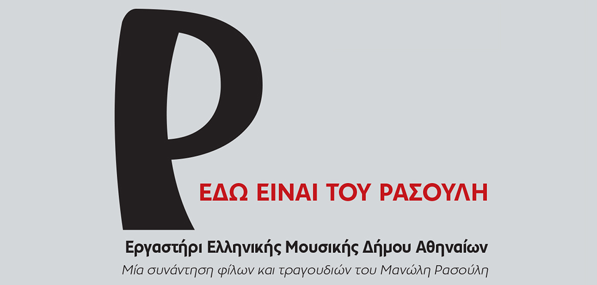 Το Εργαστήρι Ελληνικής Μουσικής του Δήμου Αθηναίων παρουσιάζει μια ιδιαίτερη συναυλία-αφιέρωμα στον Μανώλη Ρασούλη, έναν από τους πιο χαρισματικούς και πολυδιάστατους δημιουργούς του ελληνικού τραγουδιού. Με δεκάδες γνωστά τραγούδια, αλλά και με εκατοντάδες άρθρα, ραδιοφωνικές εκπομπές και τηλεοπτικές συνεντεύξεις, ο Μανώλης Ρασούλης, έχει χαρακτηριστεί ως ένας από τους σημαντικότερους στιχουργούς των τελευταίων δεκαετιών. Πολλά από τα εμβληματικά τραγούδια του, όπως «Αχ Ελλάδα σ’ αγαπώ», «Να μ’ αγαπάς», «Οι κυβερνήσεις πέφτουνε», σημάδεψαν την εποχή τους και συνεχίζουν να συγκινούν μέχρι σήμερα.